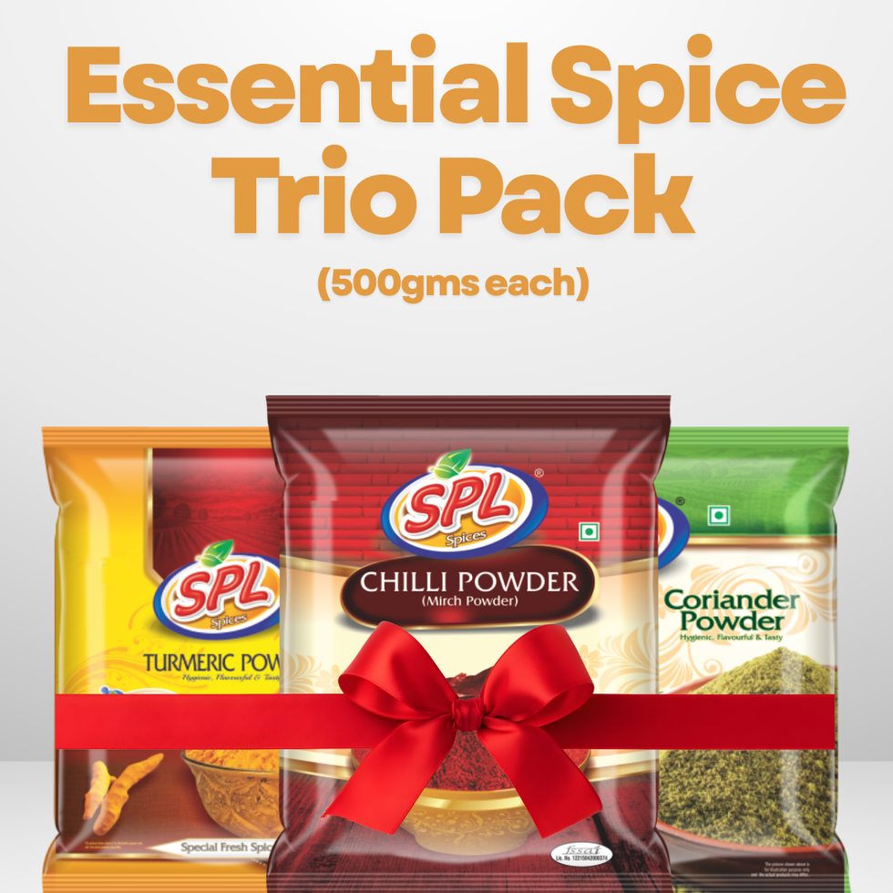 The Essential Spice Trio Pack brings together SPL’s finest 500 gm Haldi, 500 gmDhaniya, and 500gm Mirchi powders—freshly ground, rich in aroma, and perfect for everyday cooking. This combo covers all your basic cooking needs with premium purity and authentic taste.